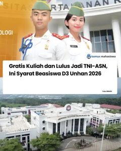 Universitas Pertahanan Republik Indonesia (Unhan RI) kembali membuka peluang beasiswa bagi lulusan SMA/SMK melalui program Diploma 3 (D3) tahun 2026. Pendaftaran akan dimulai pada 1 April 2026 dan terbuka bagi calon mahasiswa yang siap mengabdikan diri sebagai bagian dari sistem pertahanan negara.