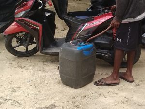 Tante Elen bilang: …”Bu ee (Kakak), sejak pagi jam 05-00 WIT., seluruh jerigen stok tersedia sudah habis dipesan orang Jabulenga.”…